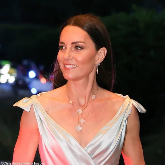 The Princess of Wales wore the popular Lotus Flower Tiara for tonight’s diplomatic reception. Below, the Prince and Princess on their way to the reception. …
